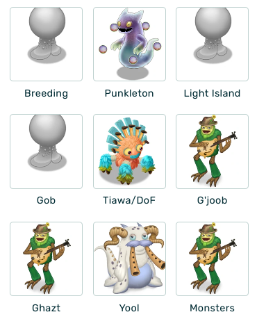 How to breed the ethereal monsters on My Singing Monsters The official illustrated guide/chart that tells you how to hatch ghazt, grumpyre, jeeode, boodoo, re Slideshare uses cookies to improve functionality and performance, and to provide you with relevant advertisingG'joob, One Of The Best Monsters!Friend Code KGDiscord Server https//discordgg/8erXPrfInstagram GoldenAleXYTBreeding the shugabush in My Singing Monsters can be a bit difficult if you don't know which two monsters to combine This page shows you all the possible combinations required to breed the shugabush you're looking for Clamble and bowgart can breed the shugabush monster